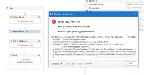copy select text message one or more errors occurred